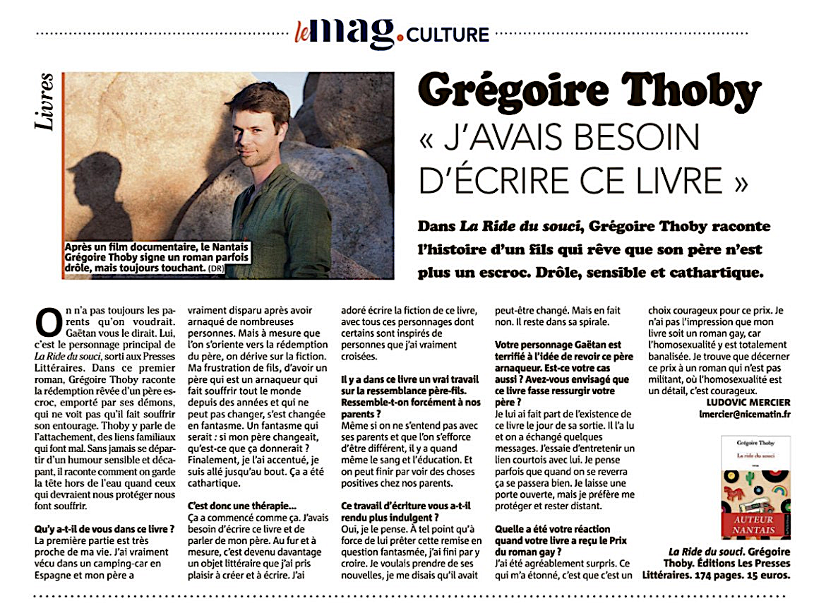 « Pour ce premier roman à l’humour acerbe, Grégoire Thoby s’est inspiré de sa propre vie, tout en poussant son récit dans des directions inattendues. C’est d’une grande fraîcheur, d’une belle lucidité, et d’une sacrée liberté de ton. »